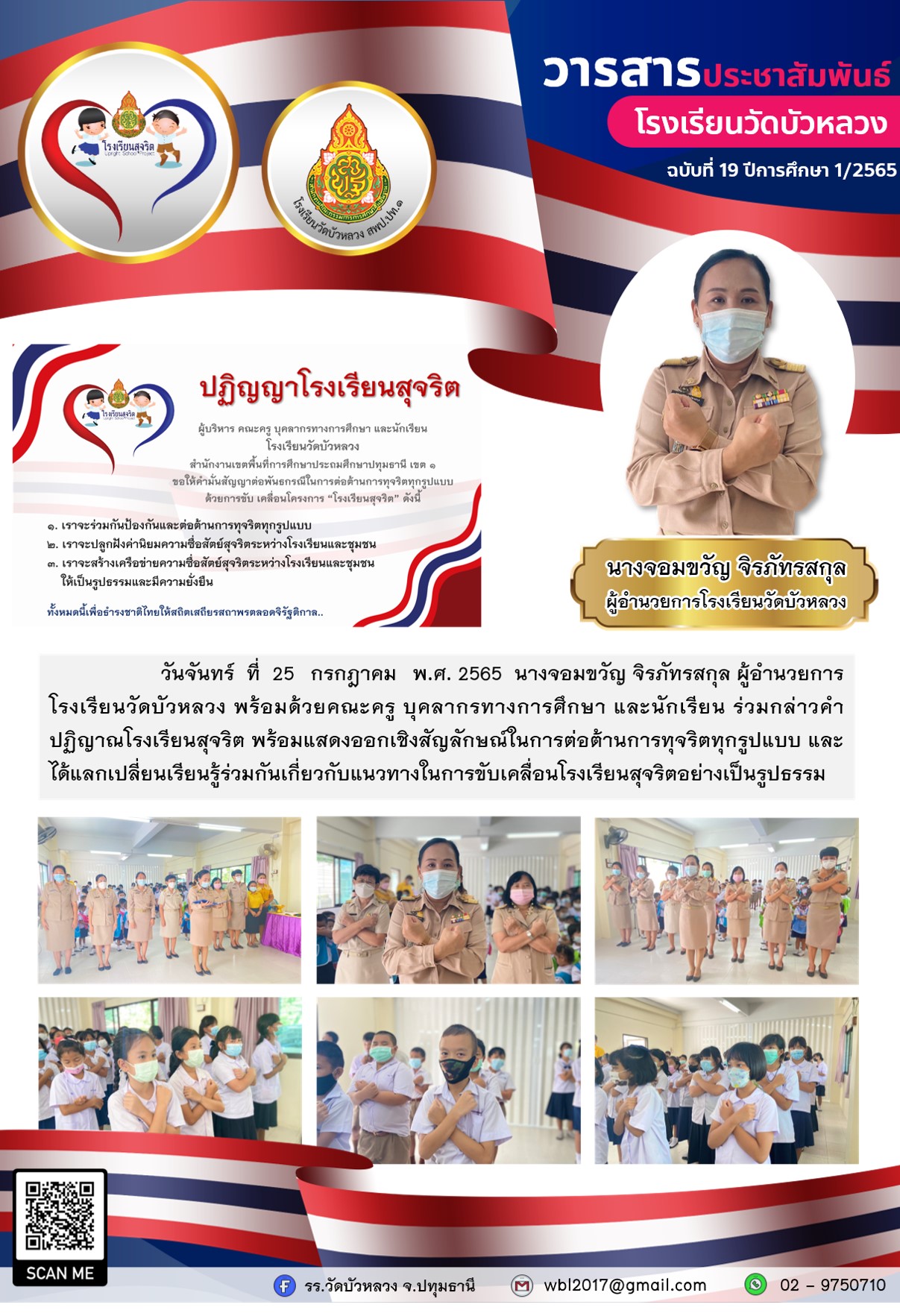 กล่าวคำปฏิญาณโรงเรียนสุจริต พร้อมแสดงออกเชิงสัญลักษณ์ในการต่อต้านการทุจริตทุกรูปแบบ